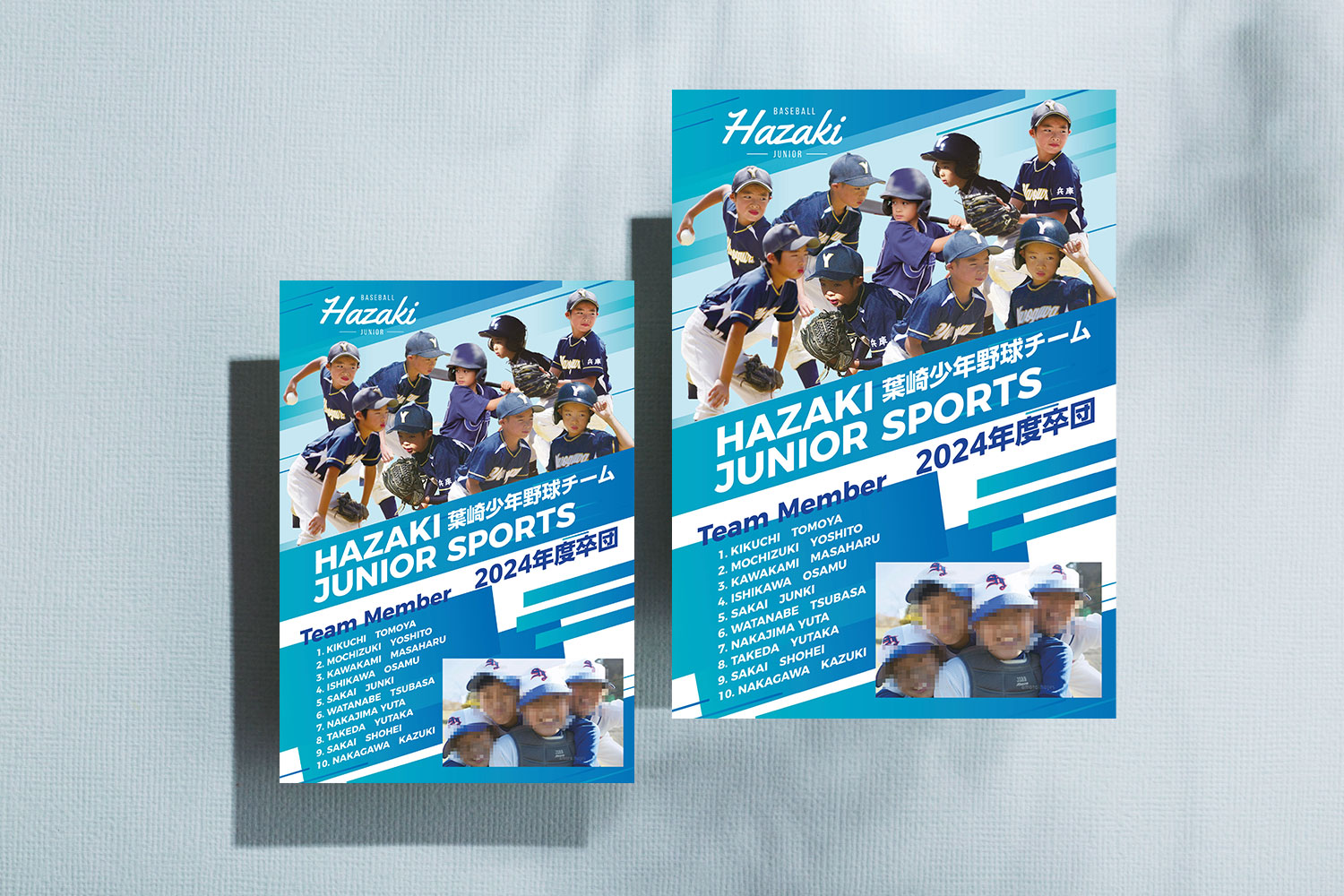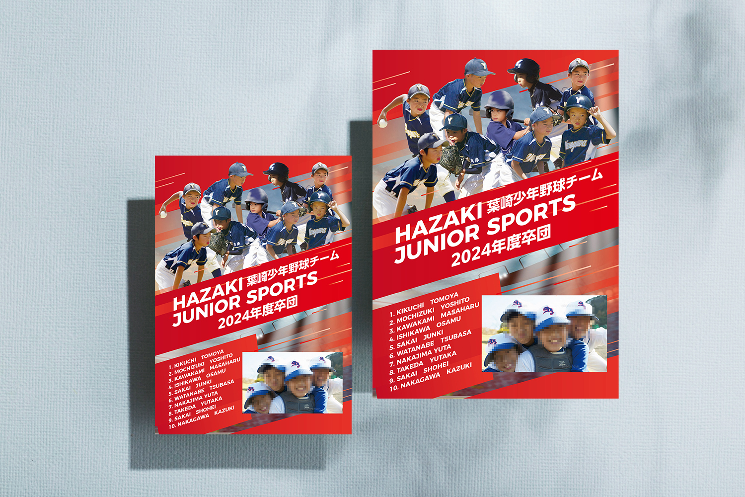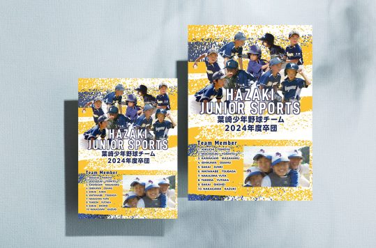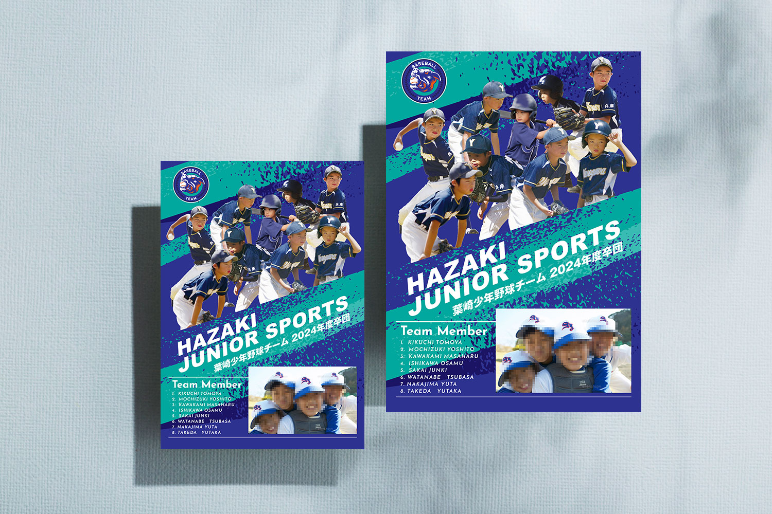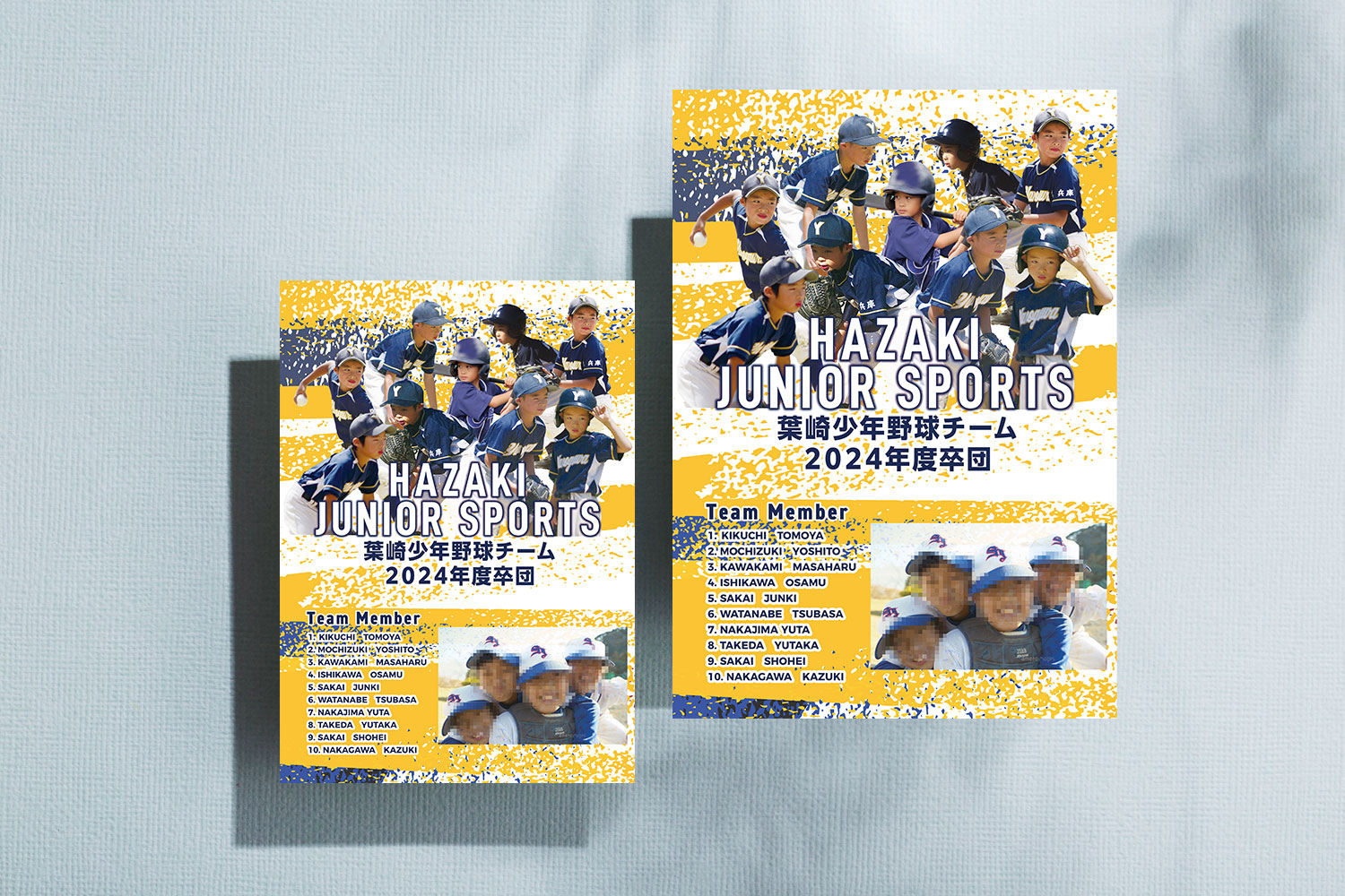 選手たちの情熱と努力を込めた写真を使い、オリジナル記念品を作ります。チームの卒団や引退記念として、ただの記念品ではなく、「このチームで本当によかった」と心から思える記念品を。少年野球や高校野球、あらゆるスポーツの輝きを心を込めてデザインします。